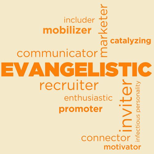 EVANGELISTIC (“One who recruits and gathers”) → this function exists on the edge and seeks to build bridges to the world and invite others into the body. It desires to make the circle wider. It thrives on the fringes of the church where it can keep an ear tuned to the culture to know how to share the gospel story with outsiders in a way that is contextually relevant. It recruits others to the kingdom cause, often with strong charisma, infectious enthusiasm, and bold calls to action. When it operates within the church body, it creates points of connection between members and catalyzes people to action. As people who are bearers of good news, they have an attractional quality to their ministry.